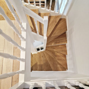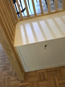 APRES: pose d'un escalier sur mesure, d'un parquet et création de meubles dans l'entrée