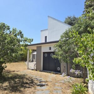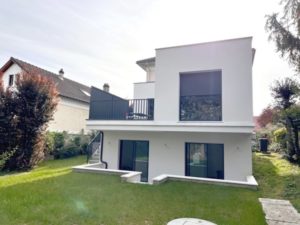 APRES: les murets ont été conservés, certains modifiés, nouveaux piliers et les menuiseries sont uniformes en aluminium blanc