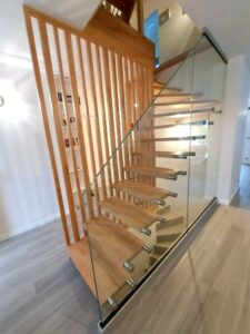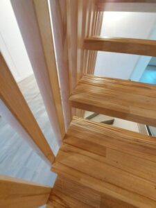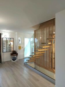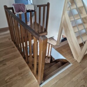 APRES: escalier un quart tournant bois et metal avec garde-corps