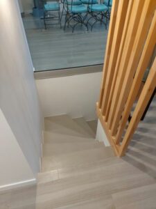 AVANT: escalier obligeant à se plier en 2 pour accéder au sous-sol