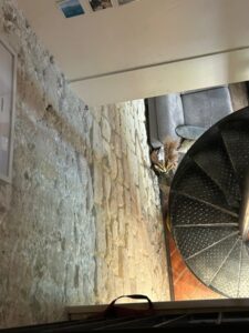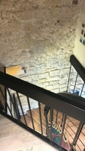 APRES Mise en oeuvre d'un enduit à la chaux et poudre de marbre, coloré dans la masse avec des pigments, travaillé pour reproduire l’aspect d’un mur en pierres