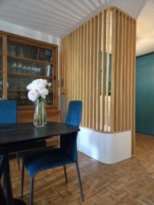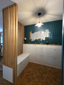 Création d’un claustra avec meuble sur mesure pour délimiter l’entrée de la salle à manger